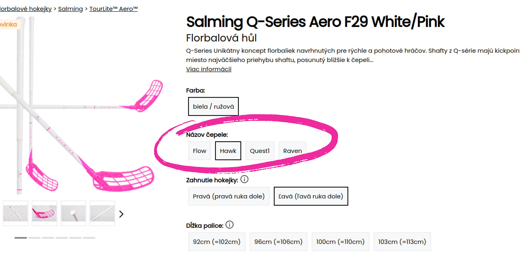 Pretože najpredávanejšou farbou Salming čepeľou je čierna a ružová, je možnosť výberu iba týchto dvoch farieb. Každopádne práve tieto dve farby perfektne ladia k novým shaftom! Keby si predsa len túžil po inej farbe čepele, napíš nám to do poznámky pri vytváraní online objednávky a my sa pokúsime urobiť maximum pre tvoju vysnívanú palicu.