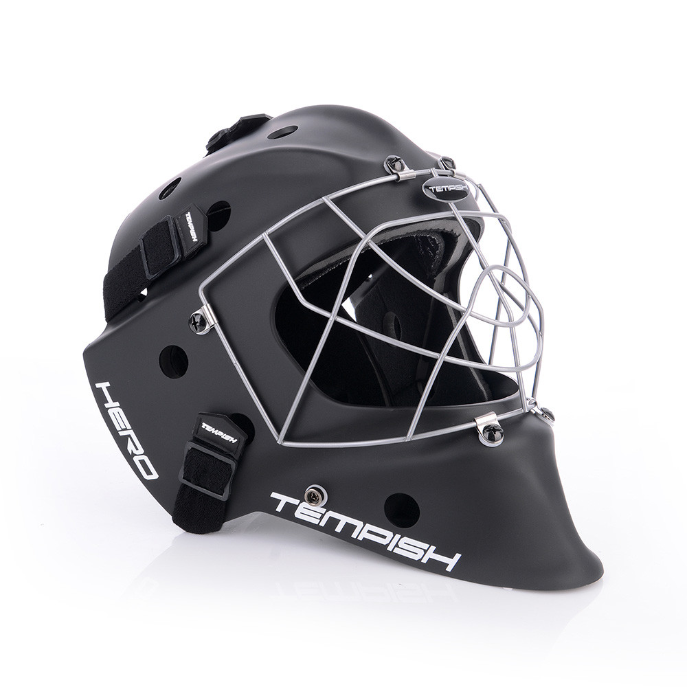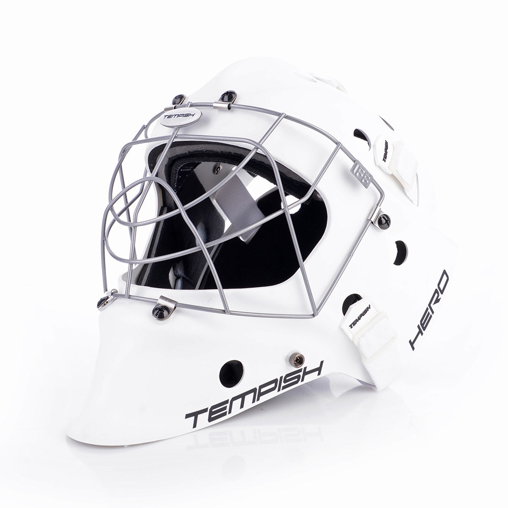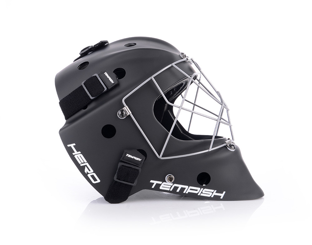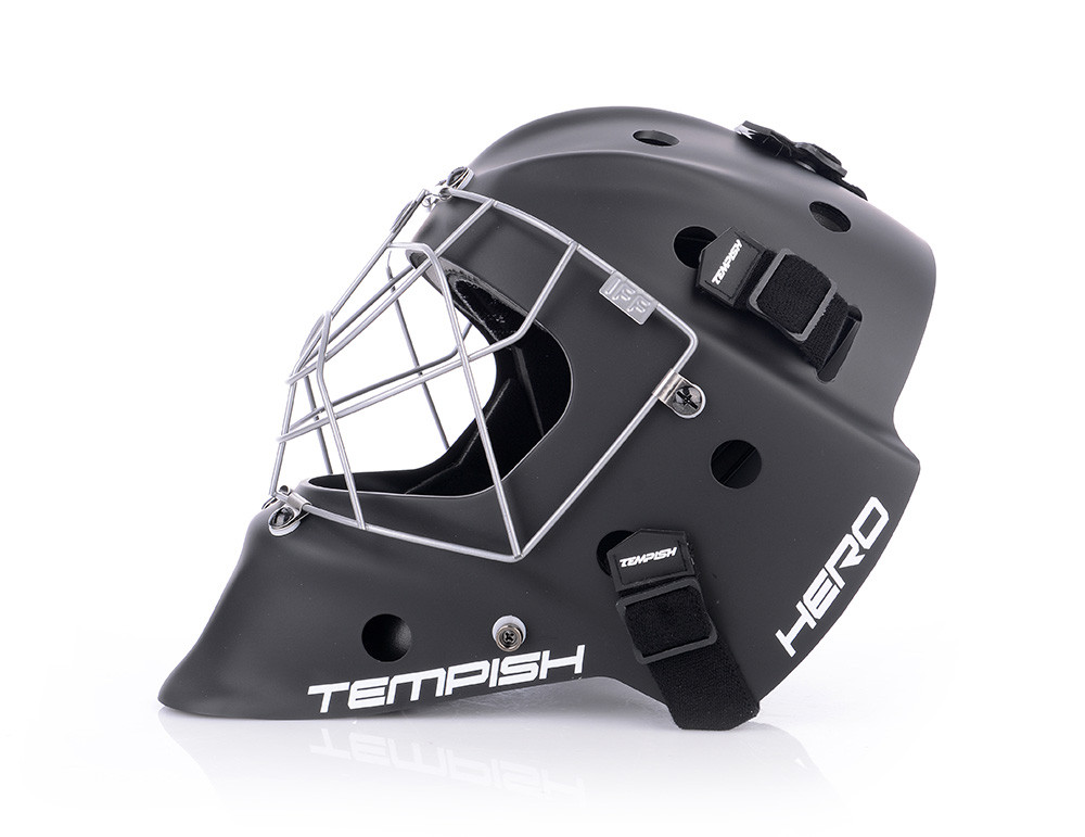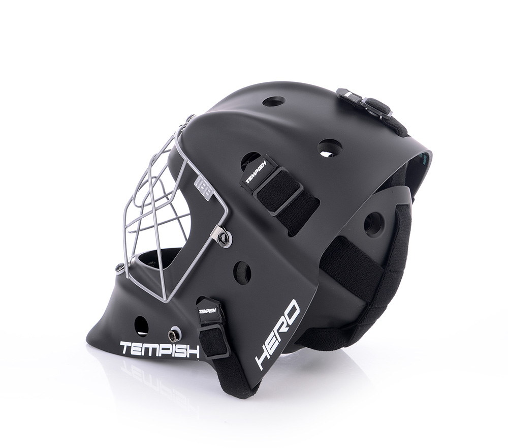 Profesionálna brankárska maska HERO je v prevedení SENIOR. Maska je vyrobená z mimoriadne odolného ABS plastu určená pre potreby súťažných a profesionálnych hráčov. Je certifikovaná IFF. Nové anatomické polstrovanie bandážou na báze PE s nastaviteľnou ochranou brady. Čelo sa opiera o vymeniteľný savý pásik z materiálu CoolMax, ktorý sa výborne stará o odvod potu. Maska sa perfektne prispôsobia každému tvaru hlavy a tváre vďaka konštrukcii, tvaru skeletu, vnútorné bandáži a materiálu sťahovacích pások. Kvalitnejšie ventilácia vzduchu je umožnená pomocou správne umiestnených vetracích otvorov. Nový typ ochrannej mriežky z kvalitnej ocele chráni tvár aj oči a zaisťuje spoločne s tvarom masky perfektný prehľad o hre. Pretiahnutá časť pod bradou chráni krk.