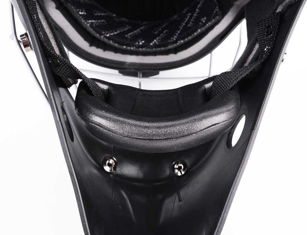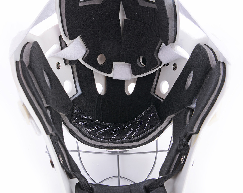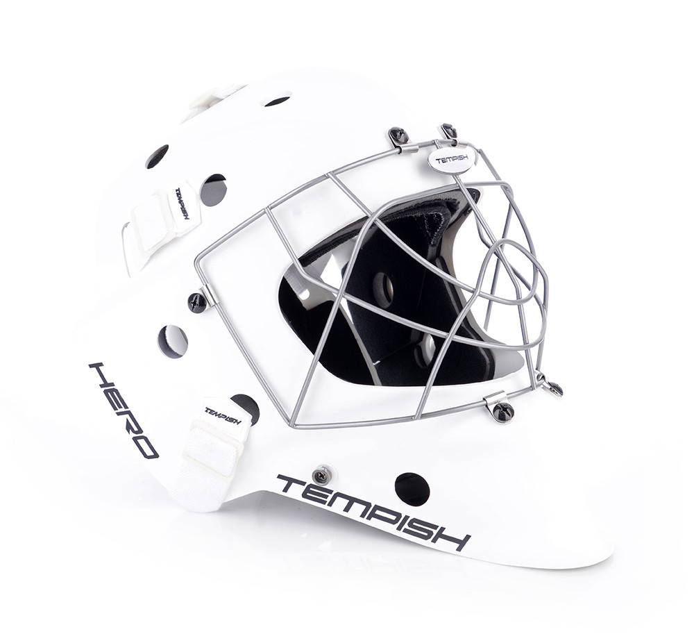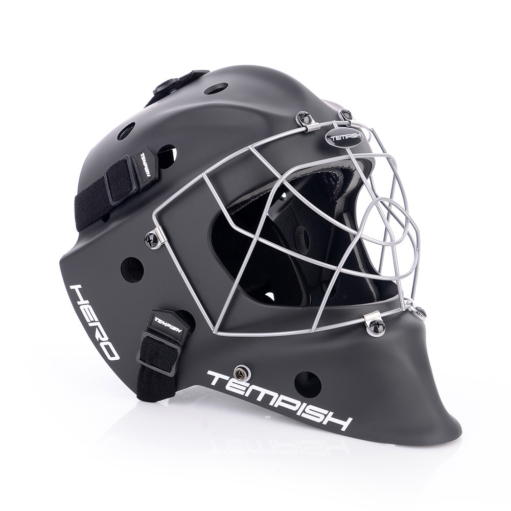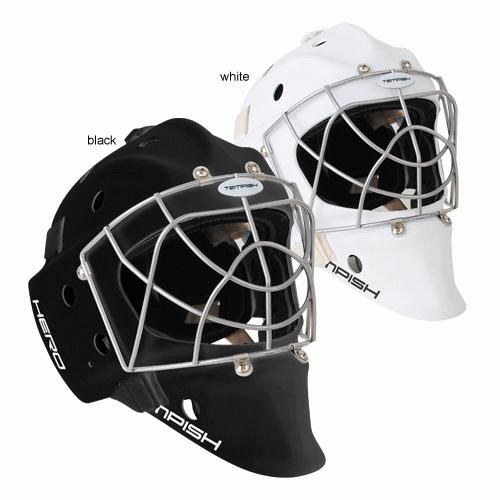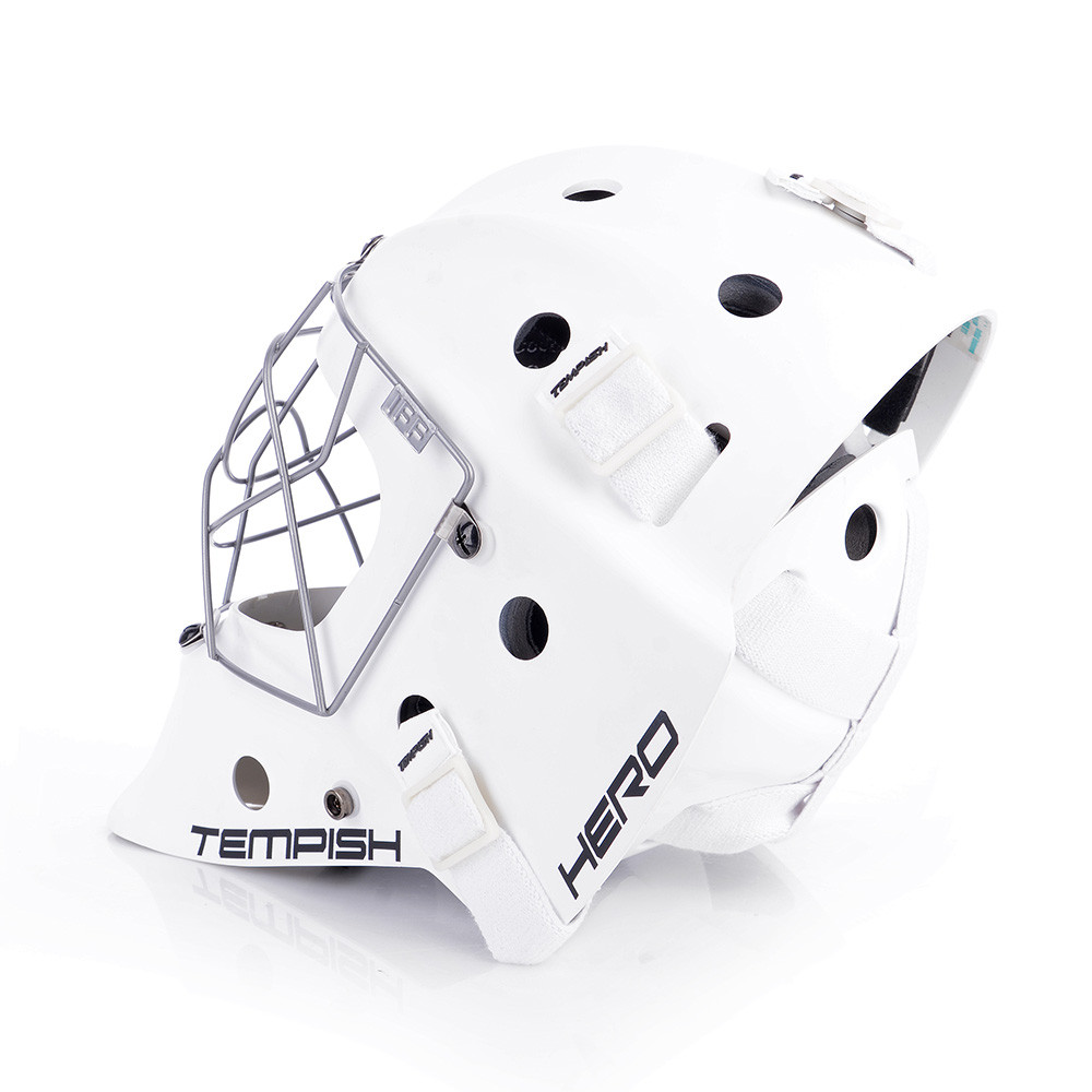 Profesionálna brankárska maska HERO je v prevedení SENIOR. Maska je vyrobená z mimoriadne odolného ABS plastu určená pre potreby súťažných a profesionálnych hráčov. Je certifikovaná IFF. Nové anatomické polstrovanie bandážou na báze PE s nastaviteľnou ochranou brady. Čelo sa opiera o vymeniteľný savý pásik z materiálu CoolMax, ktorý sa výborne stará o odvod potu. Maska sa perfektne prispôsobia každému tvaru hlavy a tváre vďaka konštrukcii, tvaru skeletu, vnútorné bandáži a materiálu sťahovacích pások. Kvalitnejšie ventilácia vzduchu je umožnená pomocou správne umiestnených vetracích otvorov. Nový typ ochrannej mriežky z kvalitnej ocele chráni tvár aj oči a zaisťuje spoločne s tvarom masky perfektný prehľad o hre. Pretiahnutá časť pod bradou chráni krk.