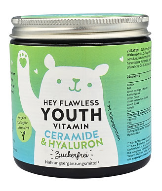 Výživový doplnok s komplexom ceramidov a kyselinou hyalurónovou vo forme gumových medvedíkov pre krásnu a mladú pleť. Verzia bez cukru, sladené stéviou. S višňovou príchuťou.