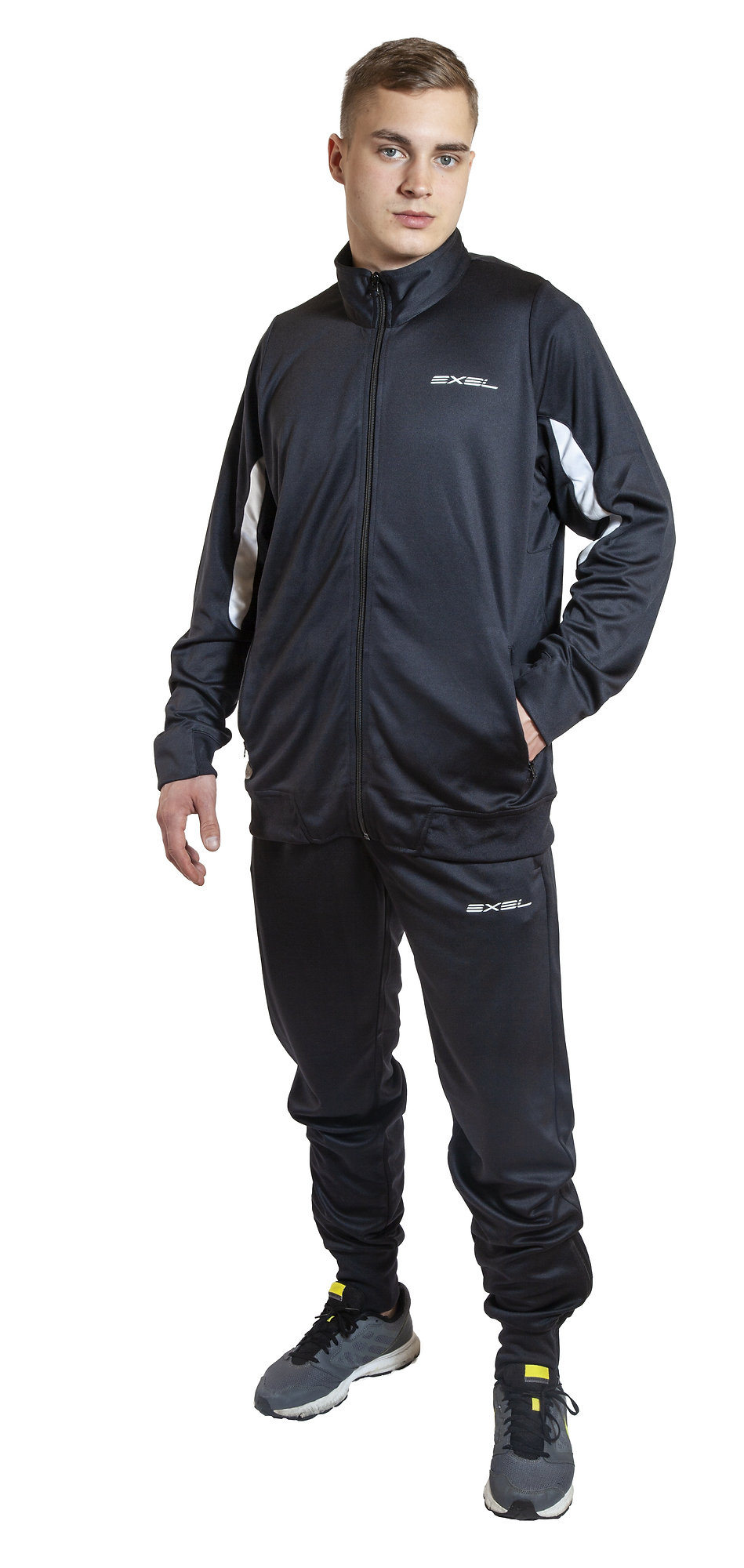 Bunda tejto súpravy je vyrobená z príjemného materiálu. Materiál je tiež odolný a pevný, vďaka čomu sa bunda lepšie udržuje. Bunda má rovný strih, čo predstavuje ideálny pomer medzi pohodlím a priliehavosťou. Vhodná pre potlač ako tímová bunda alebo ako bunda pre športovcov jednotlivcov. Bunda má vrecká na zips a zapínanie na zips čo celej dĺžke. Bunda je vhodná na tréning aj na voľný čas.