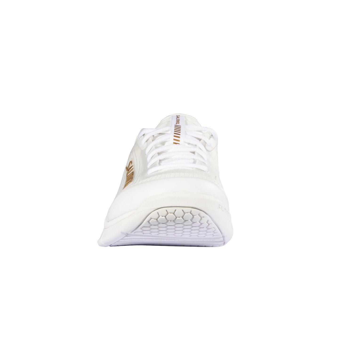 Podrážku modelu tvorí špeciálna gumová zmes XR110, ktorá vyniká perfektnou kontrolou trakcie a skvelým gripom. Ten ešte navyše umocňuje špeciálnu vzorku Salming HexaGrip™ tvorenú v kľúčových častiach topánky malými šesťuholníkmi.
