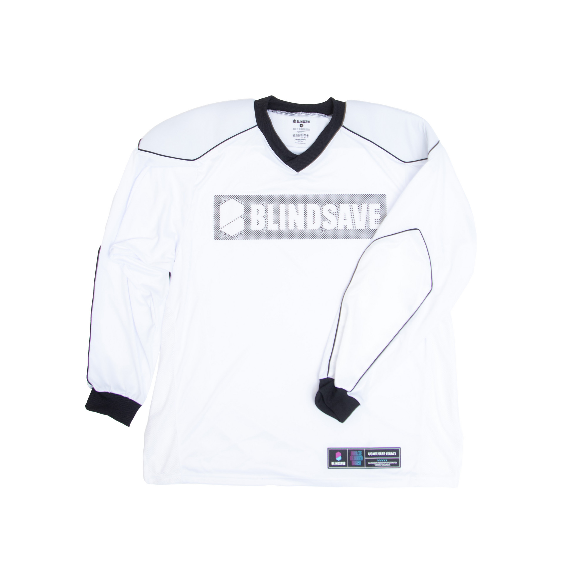 BlindSave LEGACY Goalie jersey White je prémiový brankársky dres s 3D silikónovou potlačou. Dodáva sa s polstrovanými ramenami, ktoré poskytujú lepšiu ochranu a vďaka ktorým budete v bránke vyzerať väčší. Integrovaná sieťovina poskytuje lepšie vetranie a vysokú úroveň pohodlia.